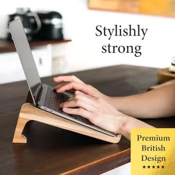 Show moreIntroducing the Mawazo Premium Wooden Laptop Stand, the perfect blend of style and functionality that effortlessly elevates your workspace while providing relief for your neck and back. Designed for laptops ranging from 10 to 17 inches, this remarkable laptop riser combines exquisite craftsmanship with an original British design to deliver both aesthetic appeal and ergonomic support. Crafted from high-quality light bamboo or medium-brown acacia, it not only serves as a dependable holder for your laptop but also as a stunning decorative piece that complements any home environment.