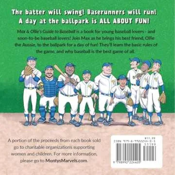 While there are various children's books available about sports, Max & Ollie's Guide to Baseball distinguishes itself through its exceptional blend of storytelling and foundational education. Unlike other books that may gloss over the rules or present them dryly, this guide presents them in an engaging narrative that combines excitement and accurate baseball vocabulary. In addition, its unique contribution to charity gives it a purpose beyond just entertainment, making it not only a choice for fun but a mindful purchase.