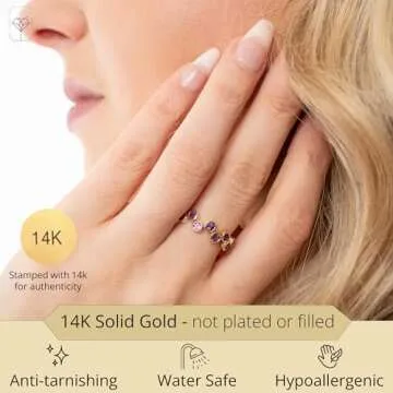 MAX + STONE 14k Solid Gold Ring Amethyst | Delicate February Birthstone Ring | Hypoallergenic Amethyst Rings for Women | Stacking Purple Gemstone Ring in Size 7