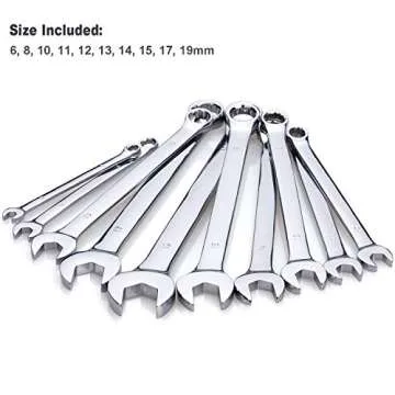 Show moreIntroducing the Max Torque 10-Piece Premium Metric Combination Wrench Set, designed for professionals and DIY enthusiasts alike. Crafted from high strength chrome vanadium steel, these wrenches boast a rust preventative mirror chrome finish that not only enhances their durability but also exceeds ANSI B107.6 quality standards. Each wrench in this set includes metric sizes ranging from 6mm to 19mm, making it a versatile addition to any tool collection.