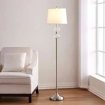 Maxax Floor Lamp 65" Standing Lamp with Blue 2 Glass Stacked Ball, 3-Way Dimmable Tall Pole Lamp with White Fabric Shade for Bedroom Office Living Room
