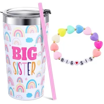 Made from high-quality materials, the stainless steel of the mug combined with a silicone straw and plastic lid ensures that it is both spill-resistant and leak-proof. Meanwhile, the eye-catching big sister bracelet, crafted with lightweight acrylic and adorned with heart and round beads, complements the tumbler beautifully. This thoughtful gift set is designed to remind big sisters of their important role and the joy that comes with being an older sibling.