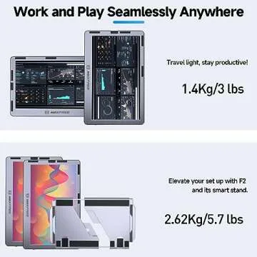 Weighing in at just 5.7 pounds, the F2 maintains remarkable portability without sacrificing durability. Its robust all-aluminum frame ensures long-lasting use while allowing for easy transport between workstations. Each of the dual 14-inch screens only weighs 689 grams and measures a slim 9 millimeters, making this setup as travel-friendly as it is effective. Whether you’re at home, a café, or an office, the F2's minimalist design allows you to create a professional setup on the go.