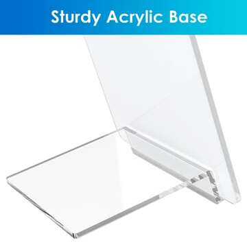 Show more The ultimate combination of style and functionality, this sleek glass dry erase board is designed to elevate your workspace or home organization. Its expertly crafted glass surface allows for smooth writing and easy erasing while minimizing ghosting of previous notes. The sturdy acrylic stand not only supports the board firmly but also adds a touch of elegance to your decor. Perfect for jotting down quick reminders or brainstorming your next big idea, this board serves as an ideal companion for professionals and creatives alike.