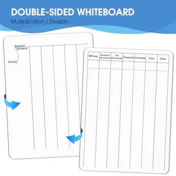 Each set includes one mini whiteboard, one whiteboard pen, and an eraser, promoting a reusable design that saves you from wasting paper. One side of the board is tailored for organizing addition, subtraction, and multiplication problems, while the other side is optimized for long division. This dual-purpose feature not only enhances learning but also makes math practice fun and engaging.