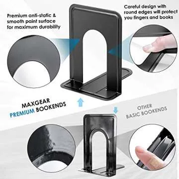 Unlike other bookends available on the market, which may be flimsy or unattractive, our bookends promise both strength and style, making them a more reliable choice. The added feature of anti-slip foam pads sets us apart, giving your books the utmost care while maintaining order.
