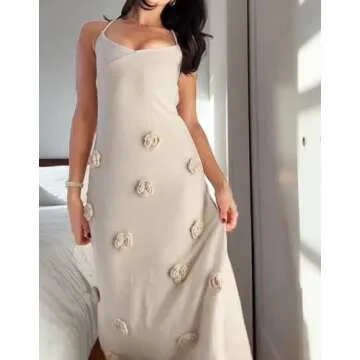 Show more Introducing the exquisite Maxi Crochet Dress for Women, an elegant and stylish addition to your wardrobe that perfectly combines sophistication with comfort. This stunning 3D floral knit maxi dress is designed with spaghetti straps and a backless style, presenting a chic silhouette that flatters various body types. Available in sizes S (US 4-6), M (US 8-10), and L (US 12-14), this piece is a versatile essential for any fashion-forward individual. Crafted from a breathable blend of 83% polyester and 17% viscose, this crochet bodycon dress not only enhances your figure but also allows for free movement, making it the ideal choice for all-day wear.