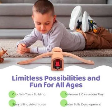The set features an exciting design that includes ascending and descending track pieces, a universal adaptor track, and a long tunnel that adds an exciting dimension to play. Children can watch their trains race through the tunnel, creating moments of joy and excitement. As a versatile product, this toy is compatible with other major brands like Thomas and Friends, BRIO, and Melissa and Doug, making it the perfect addition to any wooden railway collection.
