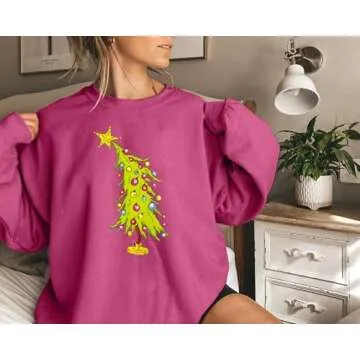 Show more Step into the festive spirit with our charming Christmas tree sweatshirt that promises to keep you cozy while showcasing your love for the holiday season. Made from a high-quality cotton blend, this sweatshirt offers a comfortable, breathable fit that feels light on the body yet delivers warmth during chilly winter days. Its cute ugly Christmas sweater design, featuring an adorable Christmas tree graphic, sets the festive tone for any gathering. The long sleeves and classic cut ensure that it's both a fashionable and playful choice for all your holiday celebrations.