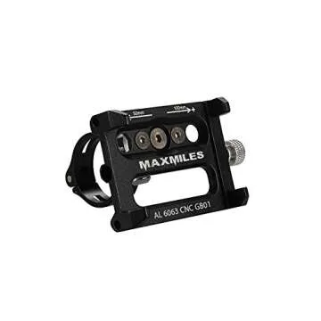 Show more Introducing the MaxMiles Motorcycle and Bicycle Cell Phone Holder, the ultimate solution for adventurers who demand reliability and style. Crafted from premium, lightweight CNC-machined aluminum alloy, this holder stands out for its strength and durability, making it perfect for both bicycle and motorcycle use. Designed for devices sized between 2” to 4” wide, it securely holds your smartphone during all types of rides—be it a leisurely cycling trip or a thrilling motorcycle adventure.