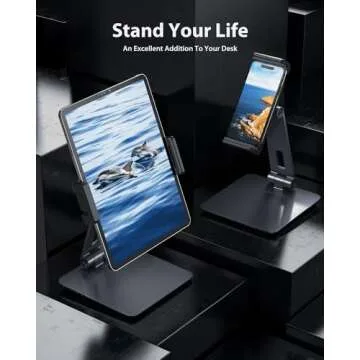 The standout feature of this mount is its 360° swivel capability, allowing you to easily adjust your device to the perfect viewing angle. Additionally, the 150° folding arm promotes a comfortable setup, reducing neck and back strain during prolonged use. Its compact design means it can be folded down for easy transport, making it an excellent choice for presentations or meetings on the go.