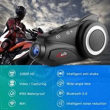 MAXTO Motorcycle Bluetooth Headset with Camera 1080P HD, M3 Upgraded 360ยฐAdjustable Clip, 6 Riders 3280Ft Motorcycle Communication Systems Group Intercoms, WiFi Transit/FM funtion, IP65 Waterproof