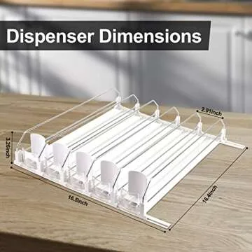 Not only does the MAXTUF dispenser maximize your space, but it also incorporates a spring-loaded pusher that elegantly glides drinks forward. This innovative system not only keeps your drinks organized but also makes accessibility effortless, ensuring that you spend less time rifling through cluttered shelves and more time enjoying your beverages. Made from durable and environmentally friendly materials, this product is built to withstand the low temperatures of your refrigerator, delivering lasting performance with every use.
