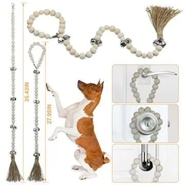 MAXVITON - Wooden Beaded Hanging Dog Doorbell - Antique Silver Bells, Puppy Hanging Doorbells, Vintage Handmade Bells, Dog Potty Training Doorbells, Pet Bells. 1 Piece (Nude, Round)