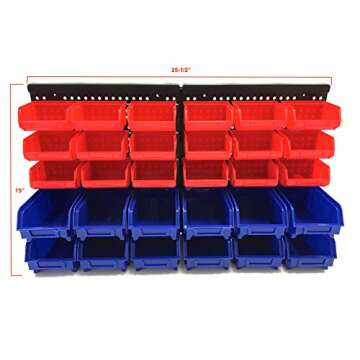 Show more This innovative storage solution is designed specifically for those who need to organize small parts such as nuts, bolts, nails, screws, and even arts and crafts materials like beads and buttons. With this unique product, the requirement to sift through cluttered drawers is a thing of the past. The sturdy and rugged frame ensures that your items are securely stored and easily accessible at all times. Featuring a combination of 18 small red bins, each capable of handling loads up to 2 lbs, and 12 blue bins that can hold up to 3.5 lbs, this storage system is as versatile as it is functional.