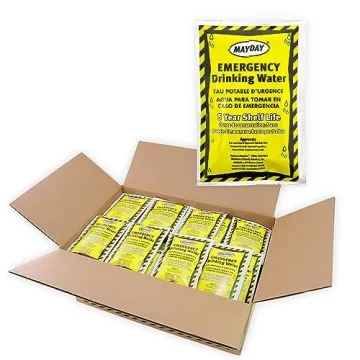 Each pouch is purified and sealed according to U.S. Pharmacopoeia standards, providing safe drinking water for you and your loved ones during emergencies. Designed with portability in mind, the compact and resilient nature of these pouches allows for effortless storage and transport without occupying excessive space. Unlike traditional plastic water bottles that can degrade over time, Mayday's innovative pouches maintain their structural integrity, guaranteeing a reliable supply of water for years.