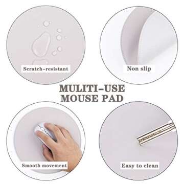 MAYIWO Round Mouse Pad,Non-Slip Mouse Mat with Premium Stitched Edge,Waterproof Thickened PVC Leather Mouse Pad for Office Work/Home/Decor-8.66"(Gray,1 Pack)