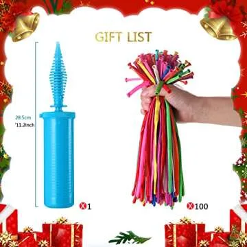 Maylai 100 Pack of Balloon Animal Kit Twisting Balloons with Pump 260 Latex Long Balloons for Christmas Party Decoration