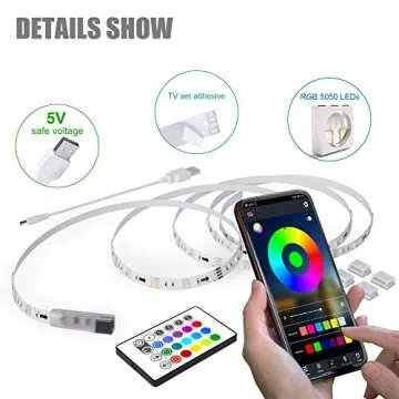 maylit Led Strip Lights, 8.2 ft Tv Led Backlight for 40-60 inch Tv Bluetooth Control Sync to Music, USB Bias Lighting Tv Led Lights Kit with Remote - RGB 5050 LEDs Color Lights for Room Bedroom