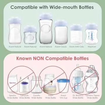 Show more Introducing the Maymom SureSeal Silicone Disc – the ultimate game changer for breastfeeding mothers on the go! These innovative sealing discs are not just any ordinary bottle caps; they are designed to make your breastfeeding experience convenient and hassle-free. Each pack comes with six light blue collars and sealing discs, compatible with Avent Classic bottles and various wide-neck options. Imagine a solution that allows you to travel with confidence, knowing that your milk is securely sealed and safe from spills.