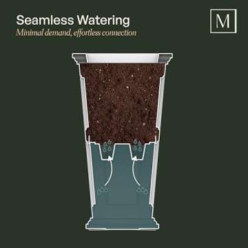 The self-watering feature allows for efficient water management, providing moisture to the plants over time, which helps in maintaining healthy plants.