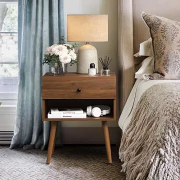 Show moreIntroducing the **Mazefur Hidden Compartment Nightstand**, a harmonious blend of style and practicality designed for the modern home. This mid-century-inspired piece features a rich walnut finish that perfectly complements your bedroom decor. With its innovative drop-down hidden compartment, simply press the back panel to reveal a discreet space ideal for safely storing letters, cash, or valuables. The versatility of the nightstand is further enhanced by the non-locking drawer, ensuring quick access to your essentials in case of emergencies.