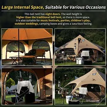 MC TOMOUNT Canvas Tent Bell Tent 16.4ft*High9.2ft with Stove Jack for Glamping Family Camping Zipped Removable Floor