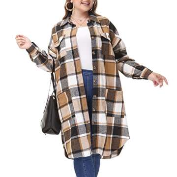 MCEDAR Women's Oversized Long Plaid Shacket Jacket Casual Lapel Long Sleeve Button Down Plus Size Flannel Shirt OOTD99804-G3X