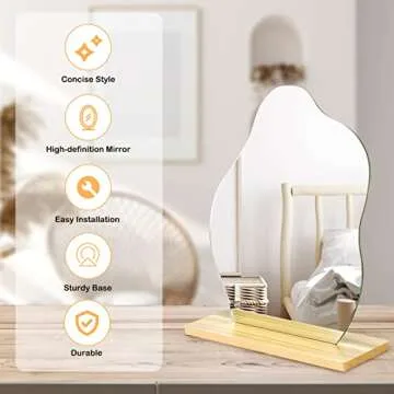 Mckuk Acrylic Makeup Desk Mirror with Stand, Aesthetic Room Decor Table Mirror, Trendy Irregular Shaped Personal Vanity Cosmetic Mirror for Home, Bathroom, Bedroom, Office