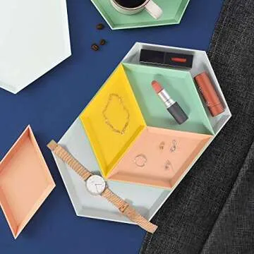 MCleanPin Trinket Dish, Unbreakable Geometric Vanity Tray,Jewelry Tray, Key Bowl,Ring Dish, Decorative Tray, Food serving tray,(4Pack,4colors) Perfect Gifts for Wedding,Birthday and Shower