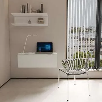 MCMACROS Wall Mounted Floating Folding Table, Drop Leaf Dining Table Small Wooden Desk for Office Home Kitchen(31.5" 23.6" (LW)), White
