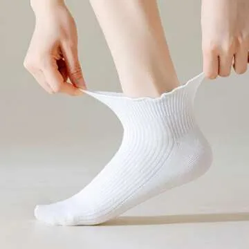 The ruffle cuffs add a charming and playful touch, making these socks both cute and functional. No need to worry about them slipping off during the day, thanks to the well-designed rubber band cuffs that provide a reliable hold. Whether you are dressing up for work or keeping it casual, these frilly socks are the ideal accessory!