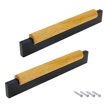 Show more Enhance the beauty of your furniture with the exquisite Mcredy 6.3 Inch Wood Cabinet Pulls. Crafted from a harmonious blend of solid wood and aluminum alloy, these cabinet pulls bring a touch of elegance and durability to any space. The surface treatment of aluminum oxide not only adds to their visual appeal but also provides resistance against scratches and wear, ensuring they remain stunning for years to come. Each handle is a unique masterpiece, showcasing the natural variations in wood that give it character and charm. Measuring 180x17x26mm (7.09x0.67x1.02 inches), with a convenient installation hole distance of 6.3 inches, these pulls are designed to fit seamlessly into your home decor style.