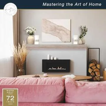 Show more Create a warm and inviting centerpiece for your home with the expertly crafted fireplace mantel by Master and Co. This stunning mantel features a modern farmhouse warm gray finish that not only elevates your interior décor but also provides a functional storage solution. Measuring 60 inches long by 8 inches wide and standing 5.5 inches high, this floating wall shelf is designed to gracefully fit above your fireplace while holding up to 30 lbs of weight.