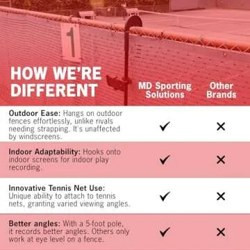 When comparing the MD Sporting Solutions Tennis & Pickleball Mount 2.0 with other products on the market, it stands out due to its exceptional design and functionality. Many mounts lack the unique cane-like hook or the stabilizing features that ensure safety during recordings. Unlike cheaper alternatives that compromise on stability and usability, this product guarantees a secure hold, easy setup, and a focus on user experience. Its excellent customer service also highlights a commitment to customer satisfaction that many competitors cannot match.