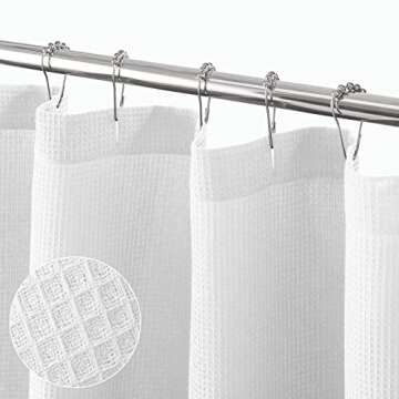 mDesign Cotton Waffle Knit Shower Curtain - Hotel Style Shower Curtain - Luxury Spa Quality Waffle Weave Fabric Cotton Shower Curtains for Bathroom - Bath and Shower Curtains - 72" x 96" - White