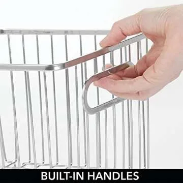 mDesign Deep Metal Bathroom Storage Organizer Basket Bin - Farmhouse Wire Grid Design - for Cabinets, Shelves, Closets, Vanity Countertops, Bedrooms, Under Sinks - Chrome