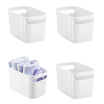 Show moreIntroducing the mDesign Deep Plastic Bathroom Bin with Handles – a stylish and multifunctional storage solution that harmonizes practicality with elegance. Crafted from high-quality, durable plastic, these bins come in a stunning bright white finish that complements any decor while adding a touch of modern refinement to your home. Measuring 10 inches long, they are just the right size for organizing essentials on your vanity countertop, holding everything from soap and shampoo to hand towels, ensuring your bathroom or laundry never looks cluttered.