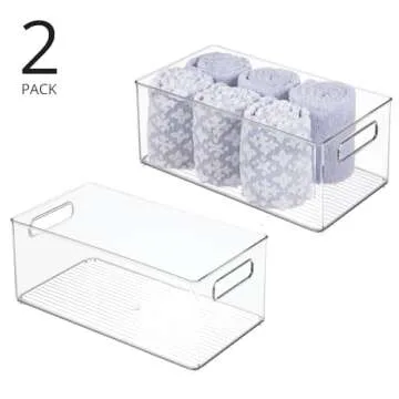 mDesign Deep Plastic Storage Organizer Container Bin, Bath and Shower Organization for Cabinet, Cupboard, Shelves, Counter, or Closet - Holds Shampoo, Vitamins, Ligne Collection, 2 Pack, Clear