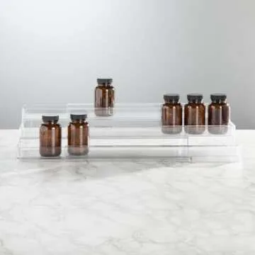 mDesign Large Adjustable, Expandable Plastic Vitamin Rack Storage Organizer Tray for Bathroom Vanity, Countertop, Cabinet - 3 Step Shelves - Holds Supplements, Medication - Clear