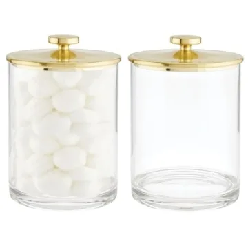 Elegant mDesign Apothecary Jars - Stylish Clear/Soft Brass Storage for Bath & Kitchen