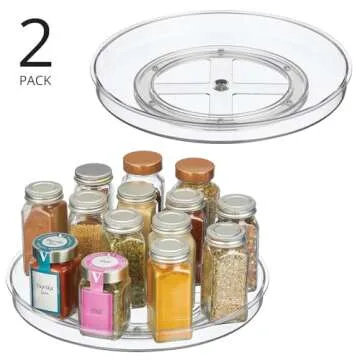 mDesign Lazy Susan Turntable Plastic Spinner for Kitchen/Bathroom, Pantry, Fridge, Cupboards, or Counter Organizing, Fully Rotating Organizer for Food, 11.5" Round - Lumiere Collection - 2 Pack, Clear