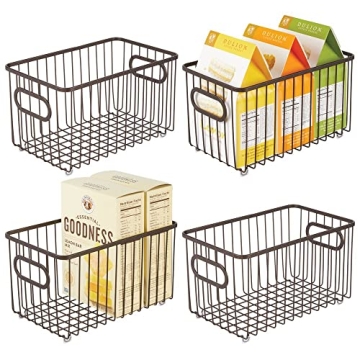 If you're looking to elevate your organization game in the kitchen or any room, look no further than the mDesign Metal Farmhouse Kitchen Pantry Food Storage Organizer Basket Bin. Designed with a charming wire grid, these bins combine both functionality and rustic style, making them ideal for a variety of spaces including cabinets, cupboards, and countertops. Each bin measures 10 inches long, providing ample storage for everything from snacks and canned goods to toiletries and craft supplies....