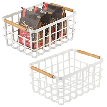 Show moreTransform your kitchen and pantry into a model of elegance and efficiency with the mDesign Metal Wire Food Organizer Storage Bin Basket with Bamboo Handles. Perfectly blending style with functionality, these bins are crafted from robust steel wire and finished in a beautiful matte white that complements any decor. With integrated bamboo handles, transporting your essentials from pantry to counter has never been easier. Each generously-sized bin measures 13.4" L x 9.06" W x 6.11" H, providing ample space for organizing all your kitchen staples from snacks to dry goods.
