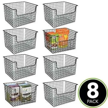 Show moreTransform your home organization with the mDesign Metal Wire Food Storage Basket Organizer, a stylish and functional solution designed to declutter every corner of your home. This 8-pack set features sleek black wire baskets with a front dip opening that allows easy access to your essentials, making it perfect for organizing kitchen cabinets, pantry shelves, bathrooms, laundry rooms, closets, and even the garage. Crafted from durable metal, these baskets not only exude a modern look but also provide long-lasting performance, making them a great addition to any space.