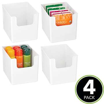 mDesign Modern Plastic Open Front Dip Storage Organizer Bin Basket for Kitchen Organization - Shelf, Cubby, Cabinet, Cupboard, and Pantry Organizing Decor - Ligne Collection - 4 Pack - White