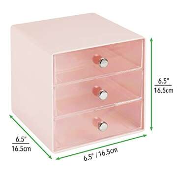mDesign Plastic 3-Drawer Stackable Nursery Storage Organizer for Baby/Kids Bedroom, Changing Table, Playroom, Modern Organization for Diaper Creams and Small Toys, Lumiere Collection, Light Pink/Clear