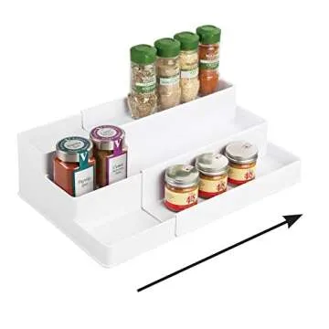 mDesign Plastic Adjustable, Expandable 3-Tier Kitchen Cabinet, Pantry, Shelf Organizer/Spice Rack - Storage for Spices, Jars, Seasoning, Baking Supplies, Ligne Collection, White