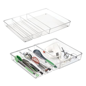 Show moreIntroducing the mDesign Plastic Adjustable/Expandable Divided Drawer Storage Organizer, the ultimate solution to declutter your kitchen and streamline meal prep! With a well-thought-out design, this set of two organizers not only boasts four generous compartments but also offers the flexibility of expansion to seamlessly fit any drawer space. Whether you're in a compact apartment or a spacious home, this organizer helps you maintain order in your kitchen pantry, cupboards, and cabinets by keeping your essential utensils, cutlery, and other tools at your fingertips.