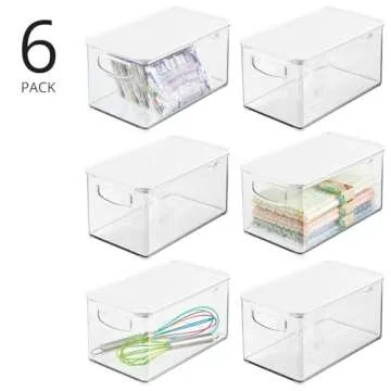 mDesign Deep Storage Bin Box with Lid & Handles – 6 Pack, Clear/White